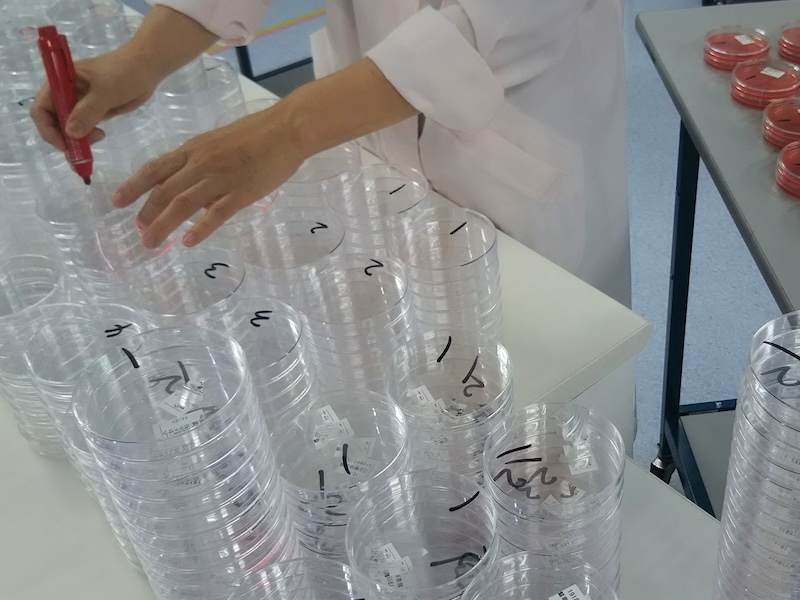 入社してすぐ約6日間の研修があります。千葉の検査センター内に研修施設があり、調査対象となる有害生物を飼育し、食品工場を模した施設で実際の作業を学べるようになっています。研修は座学と実習、半々程度ですね。