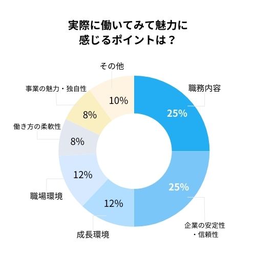 1. 現場作業や事務処理・デスクワークなど幅広い業務に携わることができ、経験できる内容が多く自分の理想の働き方に近いと感じたため