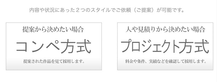 コンペ方式は、一つの仕事内容に対して複数の建築家、デザイナーが提案、応募するスタイル。一つの依頼に対して提案できる人数は、採用率を高めるために最大で5名までとしています。
