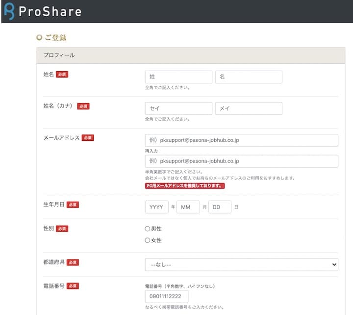 ProShare(プロシェア)を利用するためには、まずはWEBからの登録が必要です。
