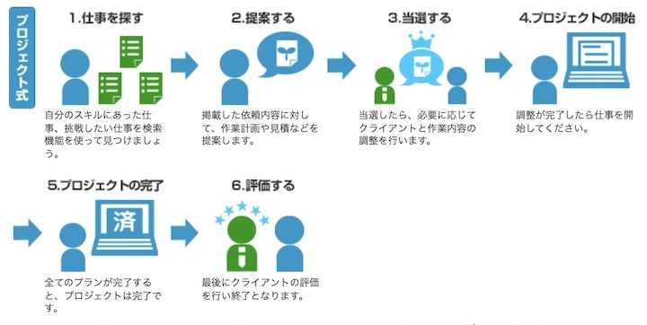 まずプロジェクト式とは、作業内容や見積りを発注者側に提案。提案が採用されてはじめて仕事を受注し、作業後に納品する方法です。