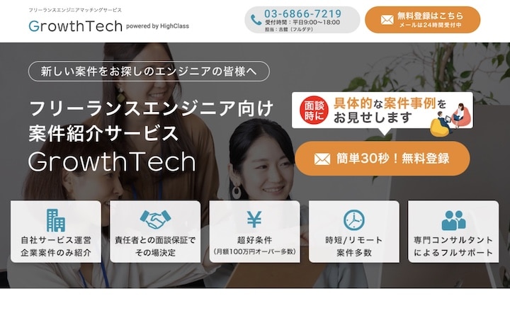 ヴァンテージマネジメント株式会社が運営するGrowthTechは、フリーランスエンジニア向きの案件紹介サービスです。