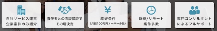月100万円以上の高単価案件や時短・リモート案件など、幅広い求人の中から希望にそったものを選んで応募できます。