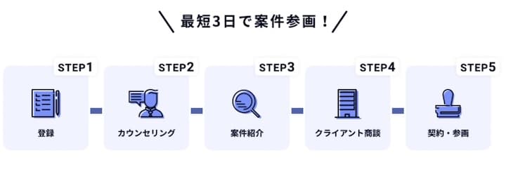 カウンセリングの結果を受けて、自分に合う案件をいくつか紹介されます。気になる案件があれば応募し、面談の流れになります。クライアントと条件をすり合わせて同意が得られれば、契約成立です。
