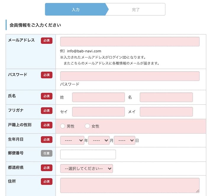 BABナビを利用するには、まずはWEBからの会員登録を行いましょう。