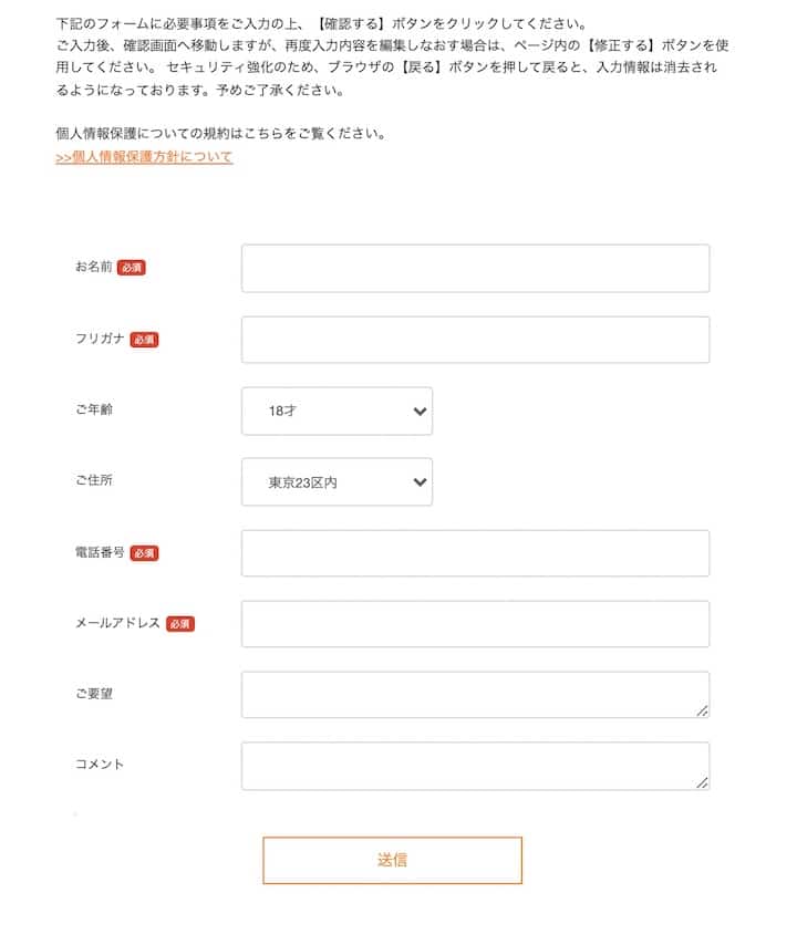 まずはフリーダイヤルか公式サイトの申し込みフォームからサービスを利用するための申し込みをします。入力する情報は最小限なので3分ほどで簡単に申し込みが完了します。