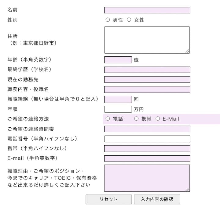 ウィルハーツの利用には、WEBサイトの「無料転職支援サービス・エントリーフォーム」からの登録が必要です。