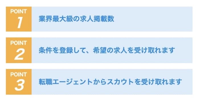 マイナビ転職エージェントサーチであれば、複数のエージェントを使うことができるだけでなく、求人の幅も大きく広がることができ、異業種に挑戦しよう!と言うモチベーションの向上にも繋げることができます。良い転職は、良いエージェント選びからと言う目標を元に、転職を支えるプロたちに出会うことができます。一つは各業界に精通した、転職エージェント3000名が在籍していること、2つ目のポイントについては、約10万件の求人から経験・希望に合わせてエージェントがスカウトすることができます。マイナビ転職エージェントサーチでは、様々な業界を見ることができるので、転職を通じて成長を実感されたい方については、オススメです。