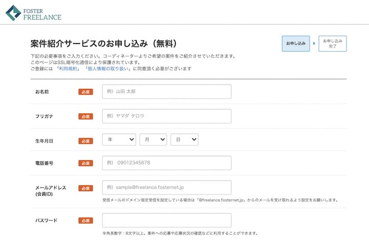 また、初めてフリーランスとして仕事をする場合、希望によっては株式会社フォスターネットとの業務委託契約となり、フォスターネットの契約社員としての手続きもできます。