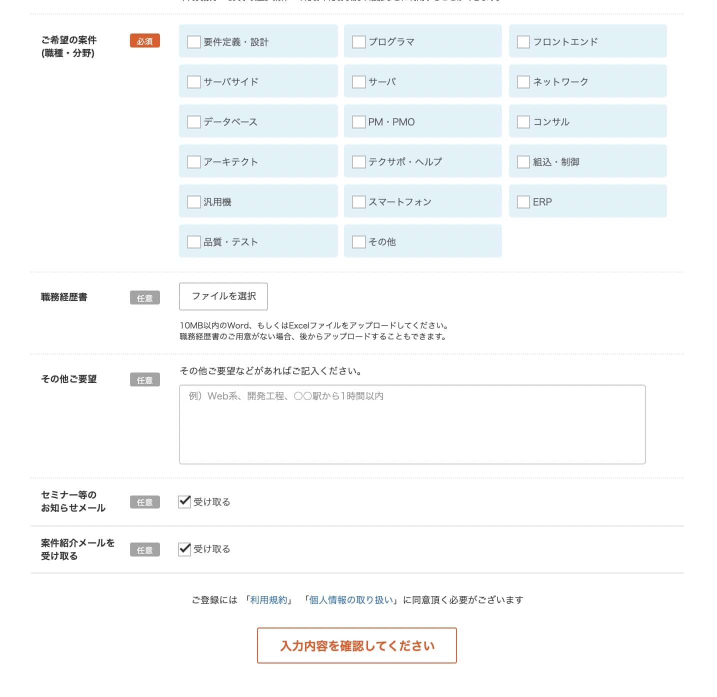 そのため、東京都23区内に出勤可能で、かつエンジニアとして自分の得意分野を活かせる人が利用対象者になると思います。