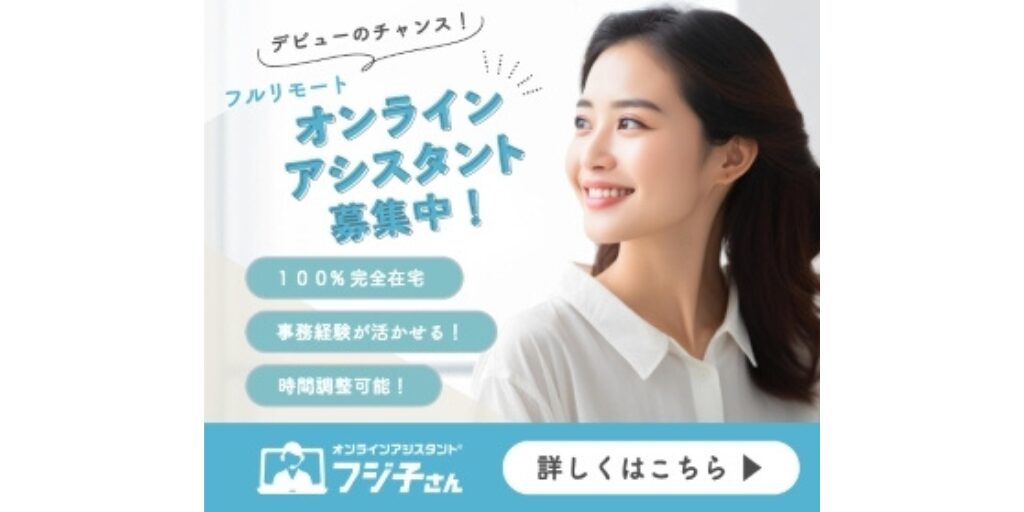 完全在宅で働けるオンラインアシスタントサービスのフジ子さんの特徴や、口コミ・評判を紹介してきました。時間や場所に縛られない働きやすさは最適です。