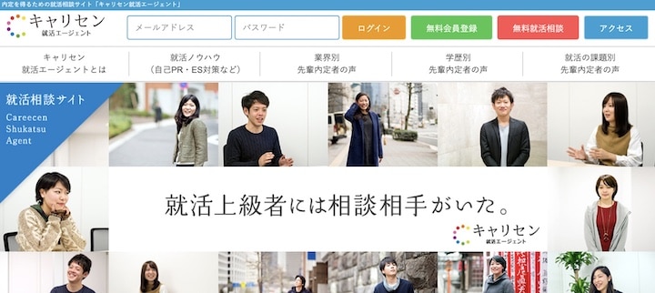 キャリセン就活エージェントのホームページには、企業別のES回答例や業界別・学歴別の内定者の声など就活ノウハウが豊富に蓄積されており、登録すると閲覧できます。