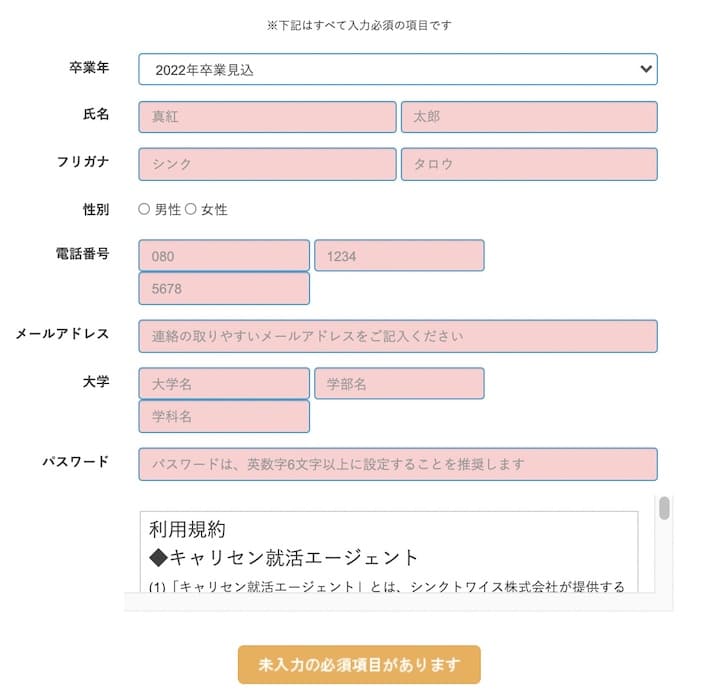 公式ホームページより「無料会員登録」。以下の項目を入力し、パスワードを設定して登録完了です。