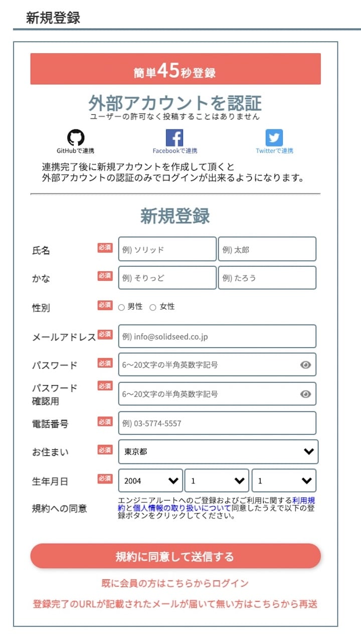 登録フォームの入力項目は以下のとおり。