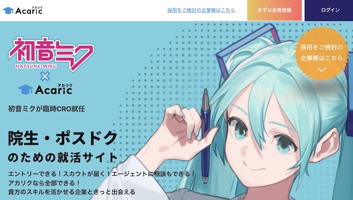 その中でも特にポスドクやアカデミックな人材を採用しようとしている企業に特化しており、Acaricに登録することでその求人情報を得ることが可能。Acaricのエージェントからの非公開求人の案内を受けとったり、企業からのスカウトがきたりすることもあります。