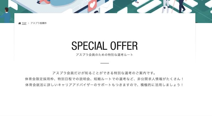 アスプラとは体育学生に特化した就活支援サービスで、数ある求人サービスの中でも類を見ないサービスです。