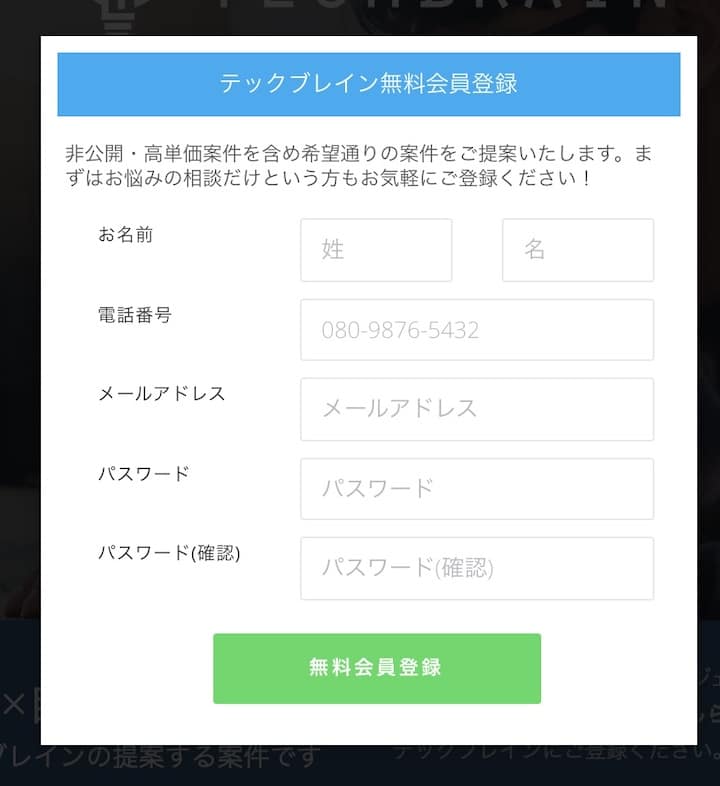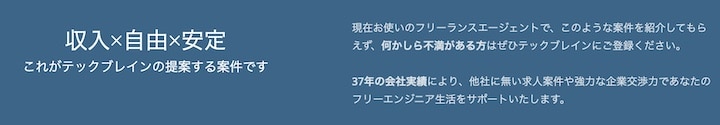 テックブレインはフリーランスのエンジニアやデザイナー向けに求人・案件を紹介しているフリーランスエージェントの1つ。