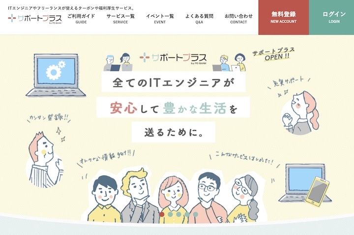 株式会社PE-BANKが運営するサポートプラスは、ITエンジニアのための福利厚生サポートサービスです。