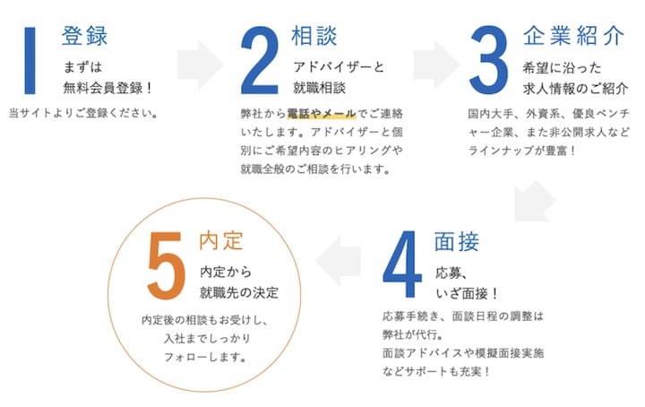 保有している案件は国内大手、外資系、優良ベンチャーだけではありません。人気企業の少数募集や採用を終了した企業からの追加募集など、非公開求人も多数保有しています。自分一人で就活しているとなかなか出会えないような求人に巡り会えるのも、エージェントを利用するメリットと言えるでしょう。
