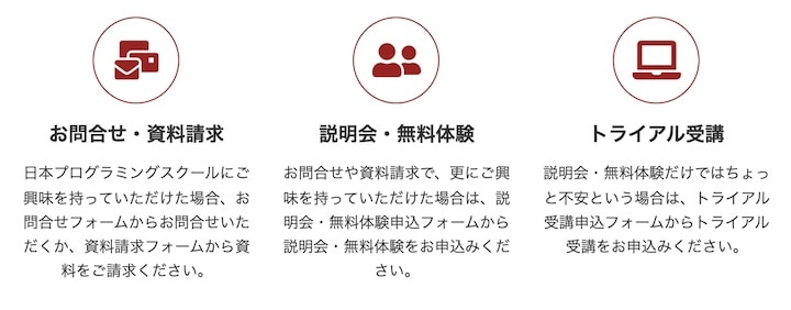 希望する場合は無料体験やトライアル受講が可能です。受講内容のイメージをするためにも、受けておくと良いでしょう。